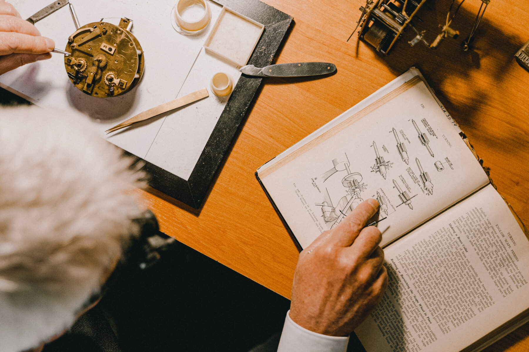 When your clock is entrusted to Clockwise, the journey begins gently. The movement is removed with care, each part examined for wear or damage. Layers of old oil and grime are coaxed away in ultrasonic baths, then meticulously rinsed and dried. Every pivot hole is checked, refurbished or even handcrafted replacement parts are made when needed, ensuring that the original craftsmanship remains intact and honoured.